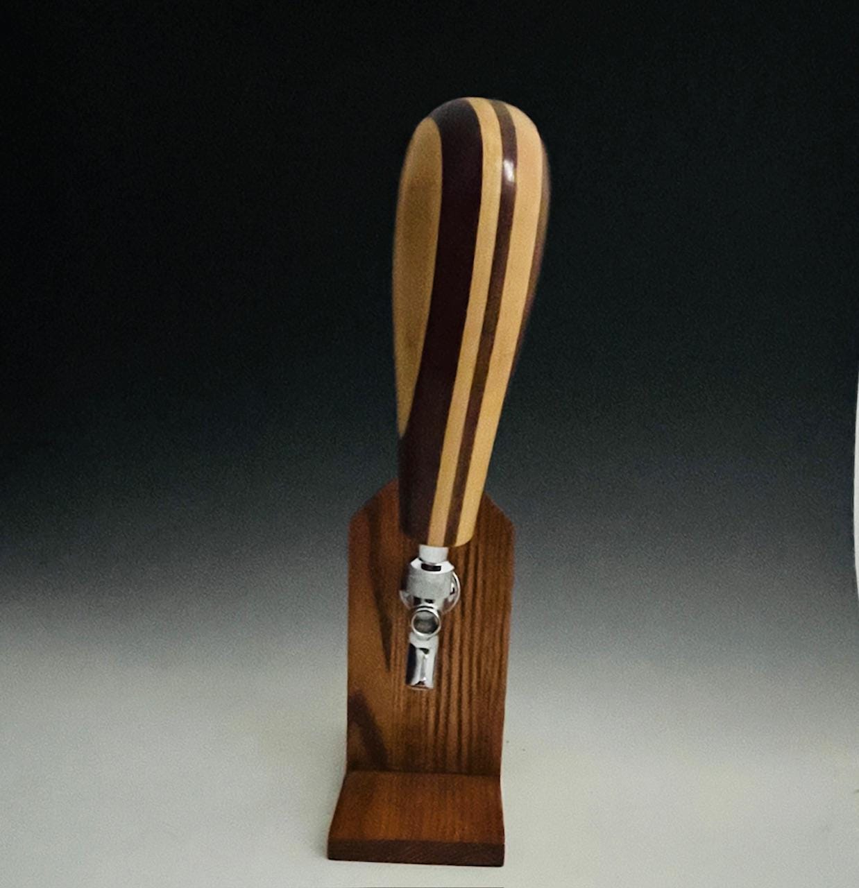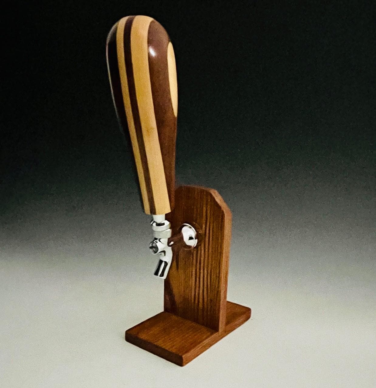 Custom wood laminated beer tap or kegerator tap handle made from walnut, mahogany, and maple woods. Each tap handle I make is handmade and unique physical features may vary. Solid brass threaded insert to fit taps with standard 3/8"-16 thread (buyis er responsible to compatibility with their tap). Makes the perfect gift for the home brewer or any beer enthusiast!
