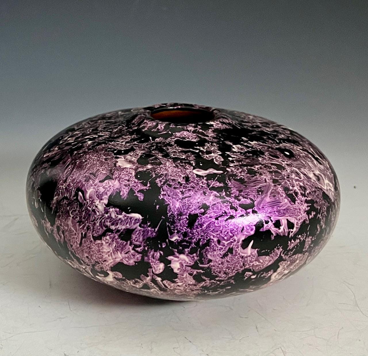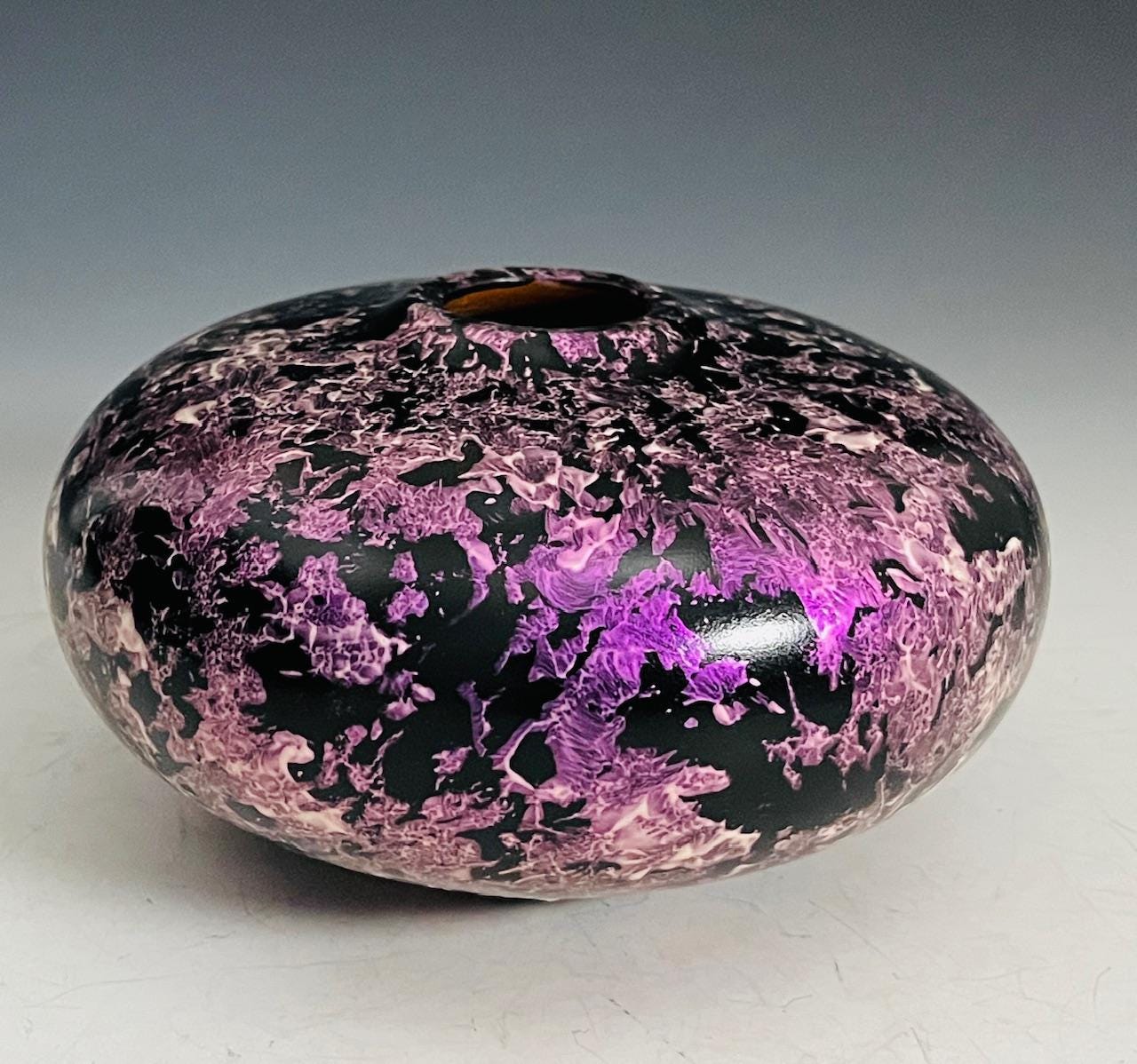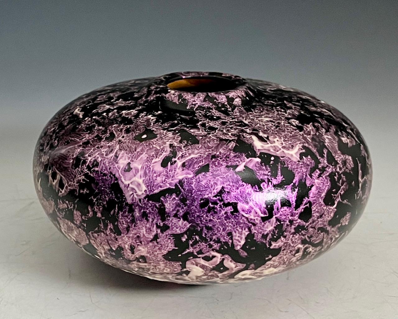 Custom handmade decorative hollow form vase for your home or office. This piece is made from a single piece of reclaimed pear wood. Red iridescent paint was applied to achieve the color and texture shown. Measures about 6" in diameter and 3" high. F It will look fantastic in any room of your house or at the office.
