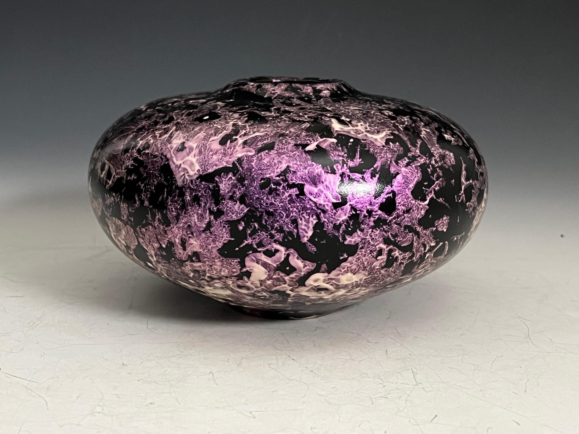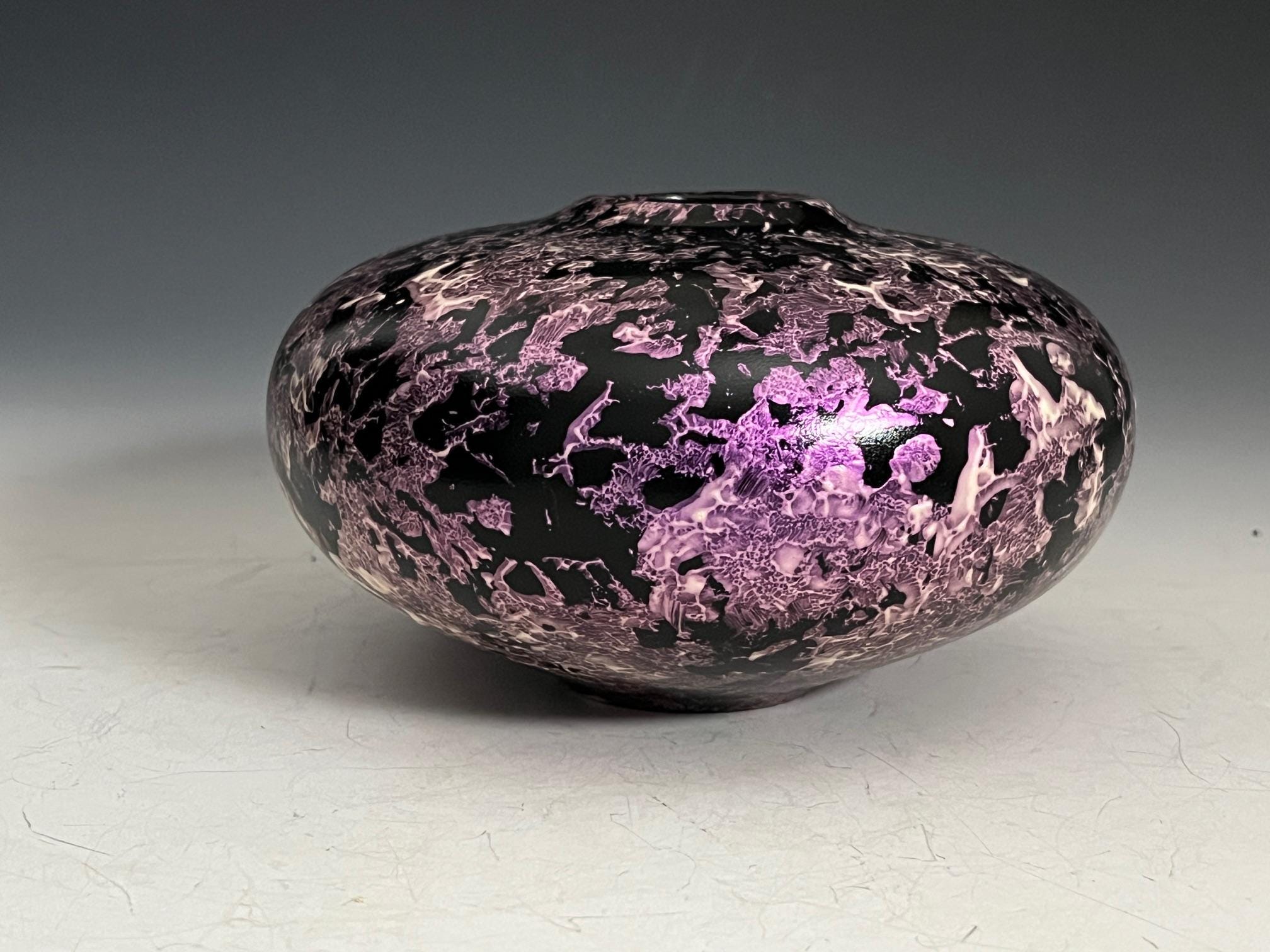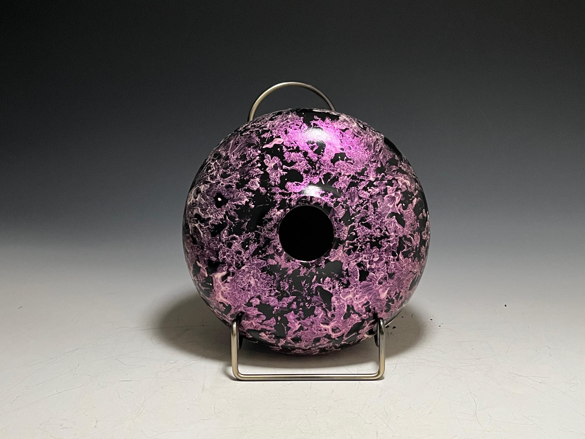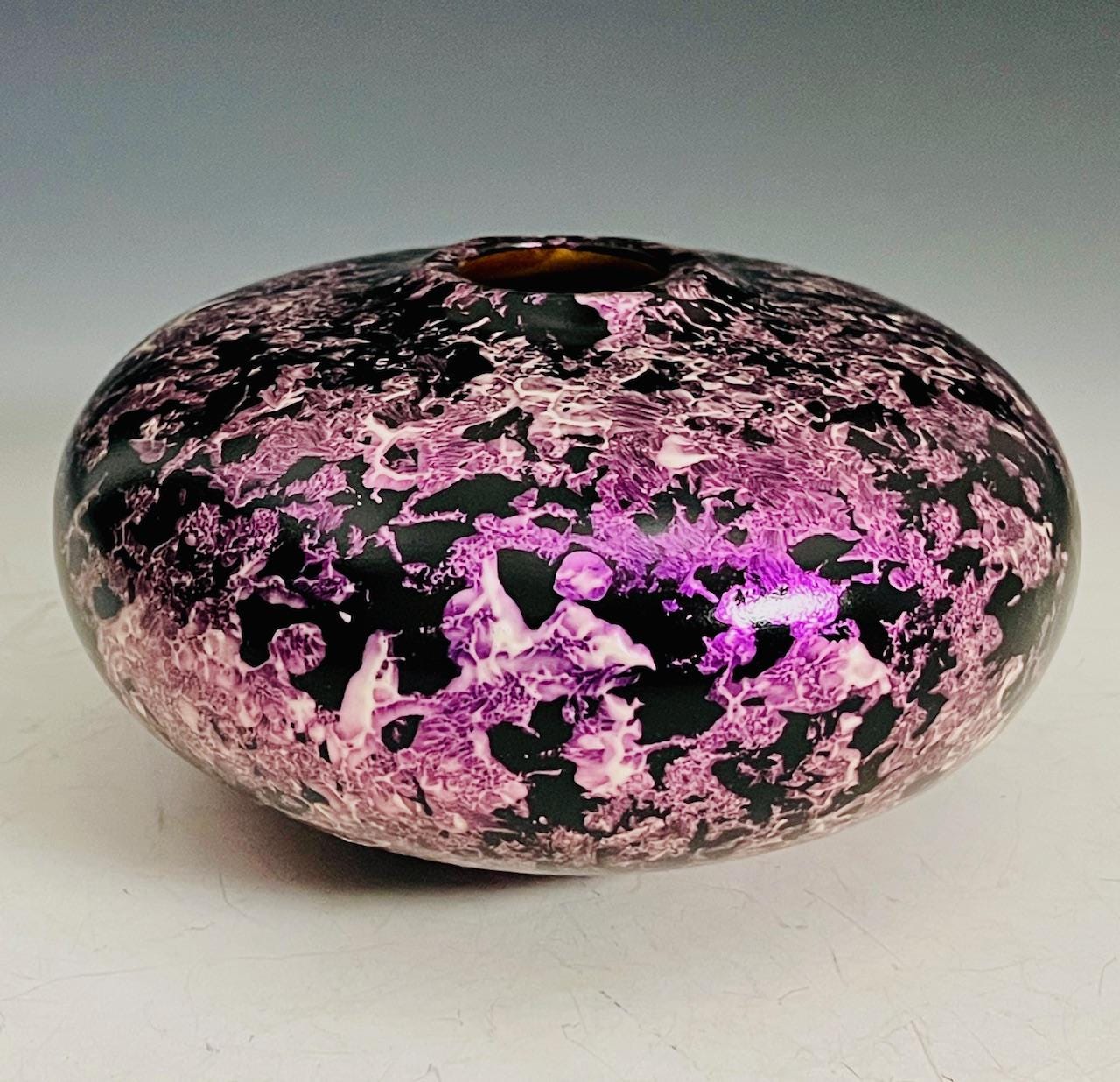 Custom handmade decorative hollow form vase for your home or office. This piece is made from a single piece of reclaimed pear wood. Red iridescent paint was applied to achieve the color and texture shown. Measures about 6" in diameter and 3" high. F It will look fantastic in any room of your house or at the office.