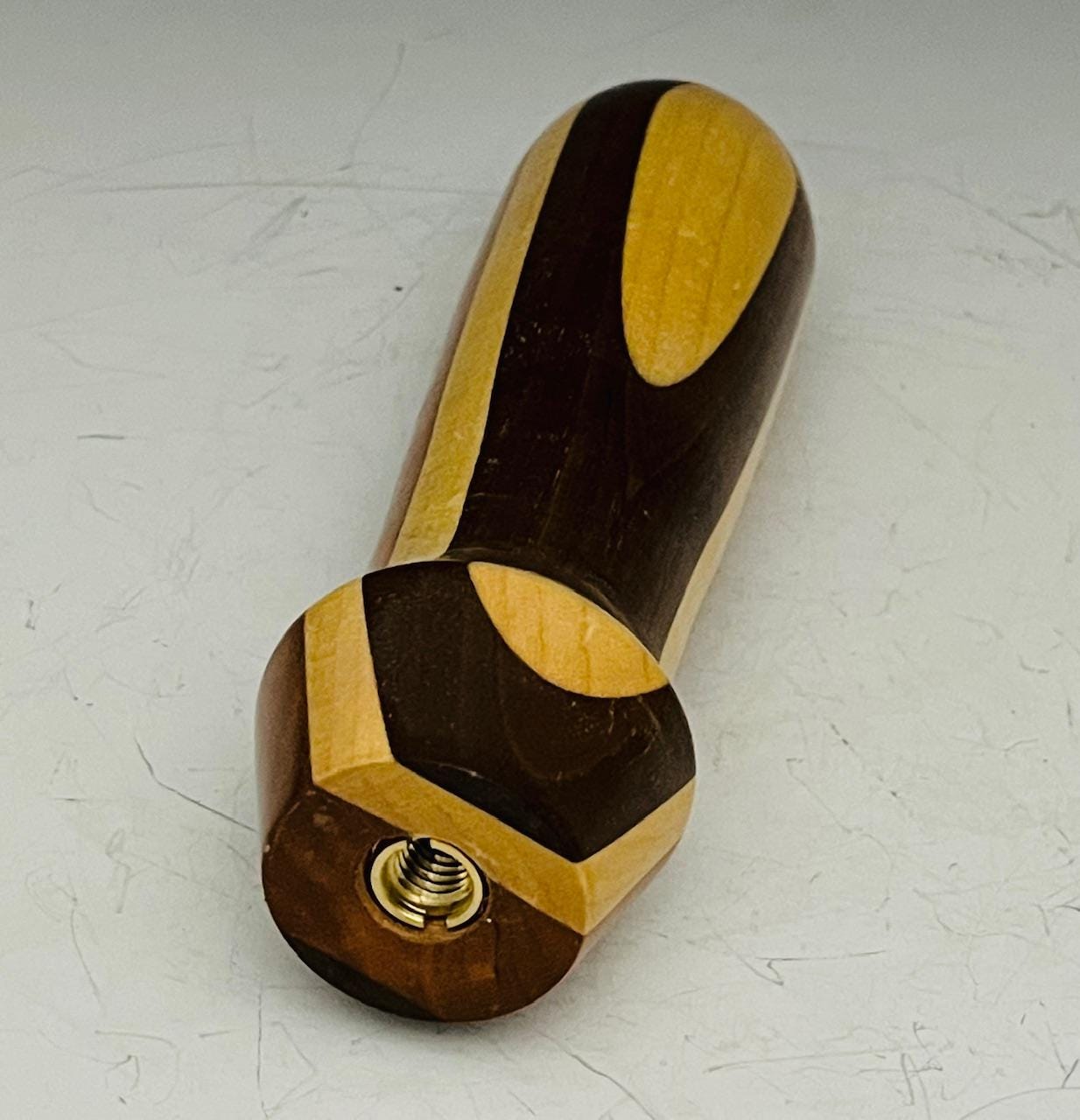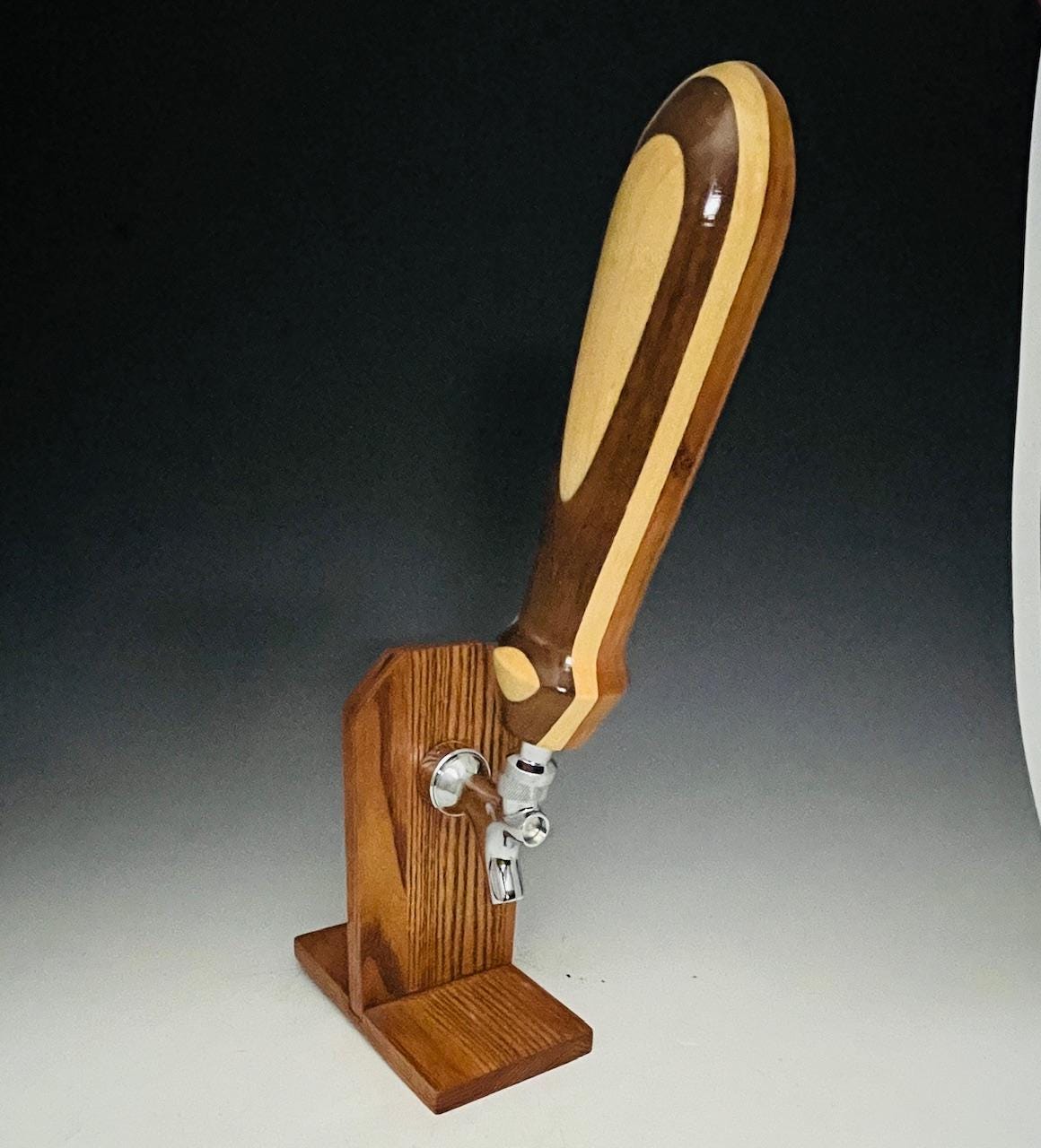 Custom wood laminated beer tap or kegerator tap handle made from walnut, cherry, and maple woods. Each tap handle I make is handmade and unique physical features may vary. Solid brass threaded insert to fit taps with standard 3/8"-16 thread (buyis er responsible to compatibility with their tap). Makes the perfect gift for the home brewer or any beer enthusiast!