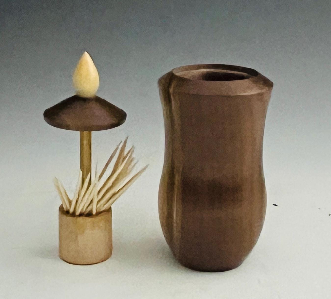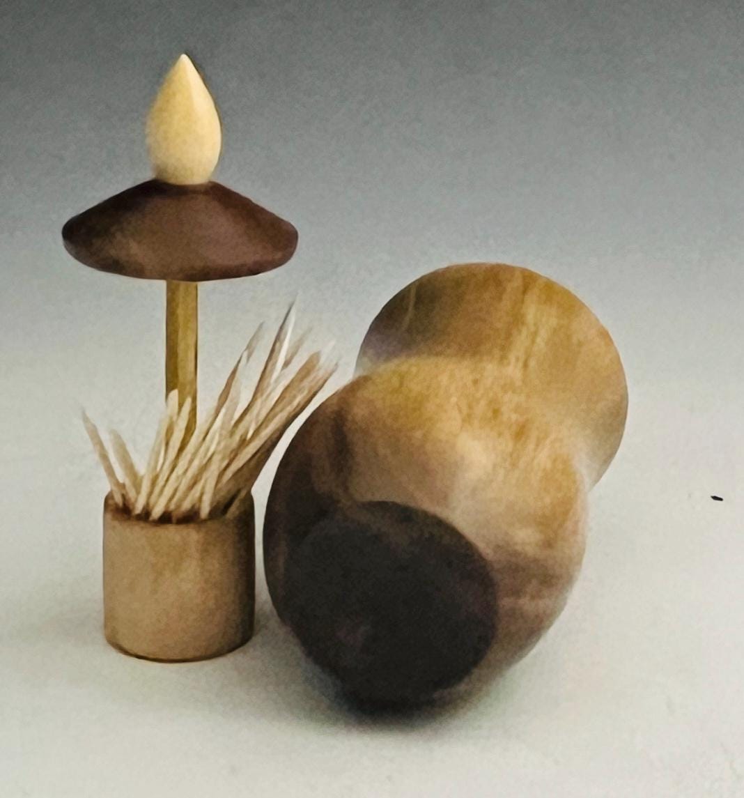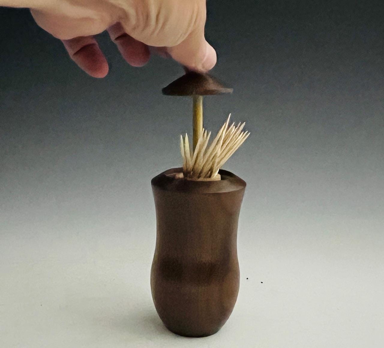 I am legally blind and hand turned this on my lathe. This toothpick holder/dispenser would be a fine addition to any home for use in the kitchen or in the dining room. It keeps the toothpicks handy and clean.