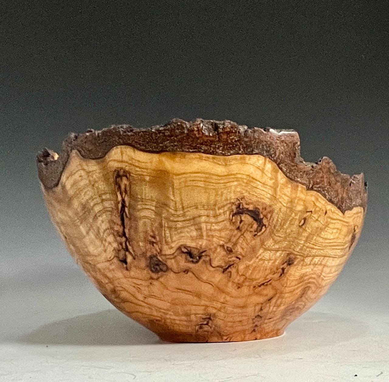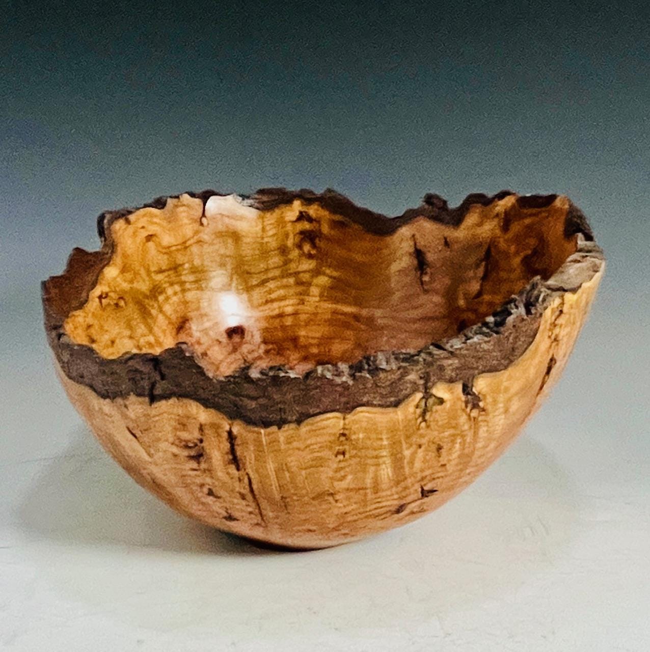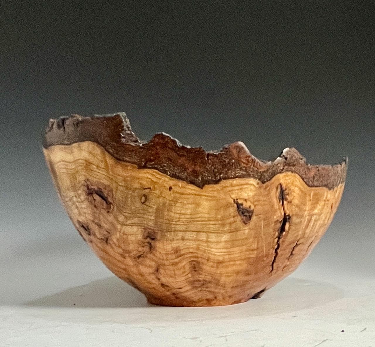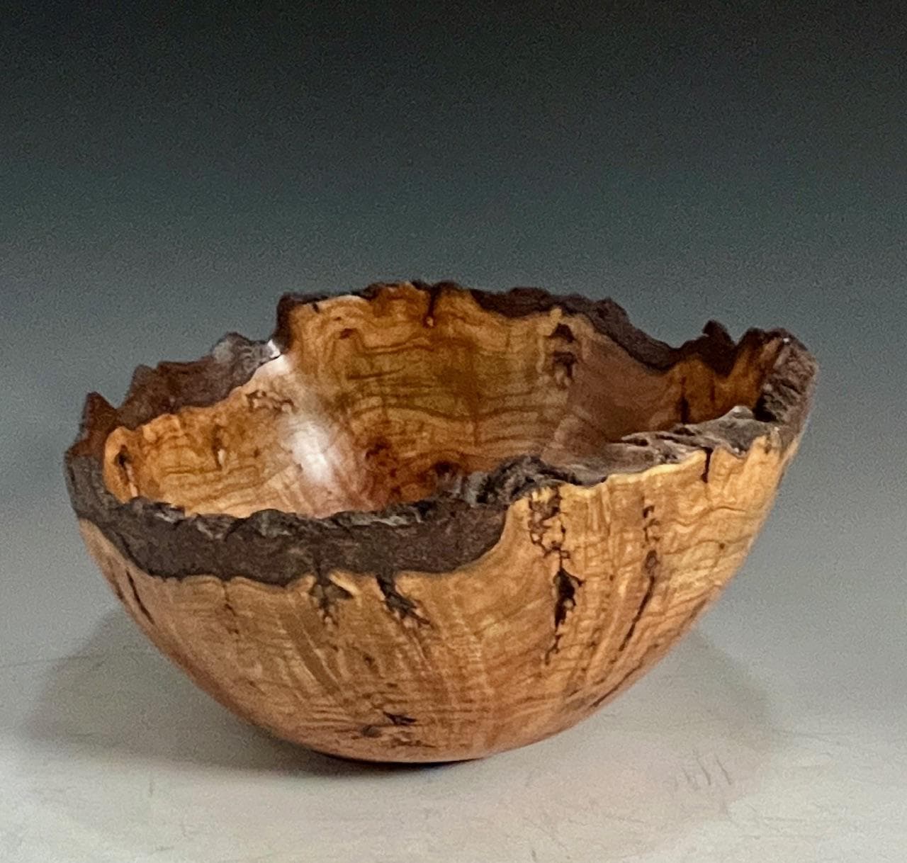 Custom handmade decorative art piece for your home or office. This bowl bowl made from a single piece of reclaimed cherry burl with natural bark edge. Lots of character with all the natural voids, cracks, and grain pattern. Measures about 7-1/2” X 4-1/2”h. Finished with several coats of hard wax oil and buffed.