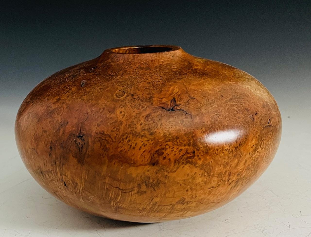 Custom handmade decorative vase for your home or office. This vase is made from a single piece of reclaimed cherry wood. There is some burl grain figure in the piece that is hard to shoe fully in the photos. The natural variations and character of wood may be evident by the presence of different coloring in grain, unique grain patterns, sap streaks or pockets, knots, etc. If you look close at the photos you will also see natural voids and cracks that create some interesting character.